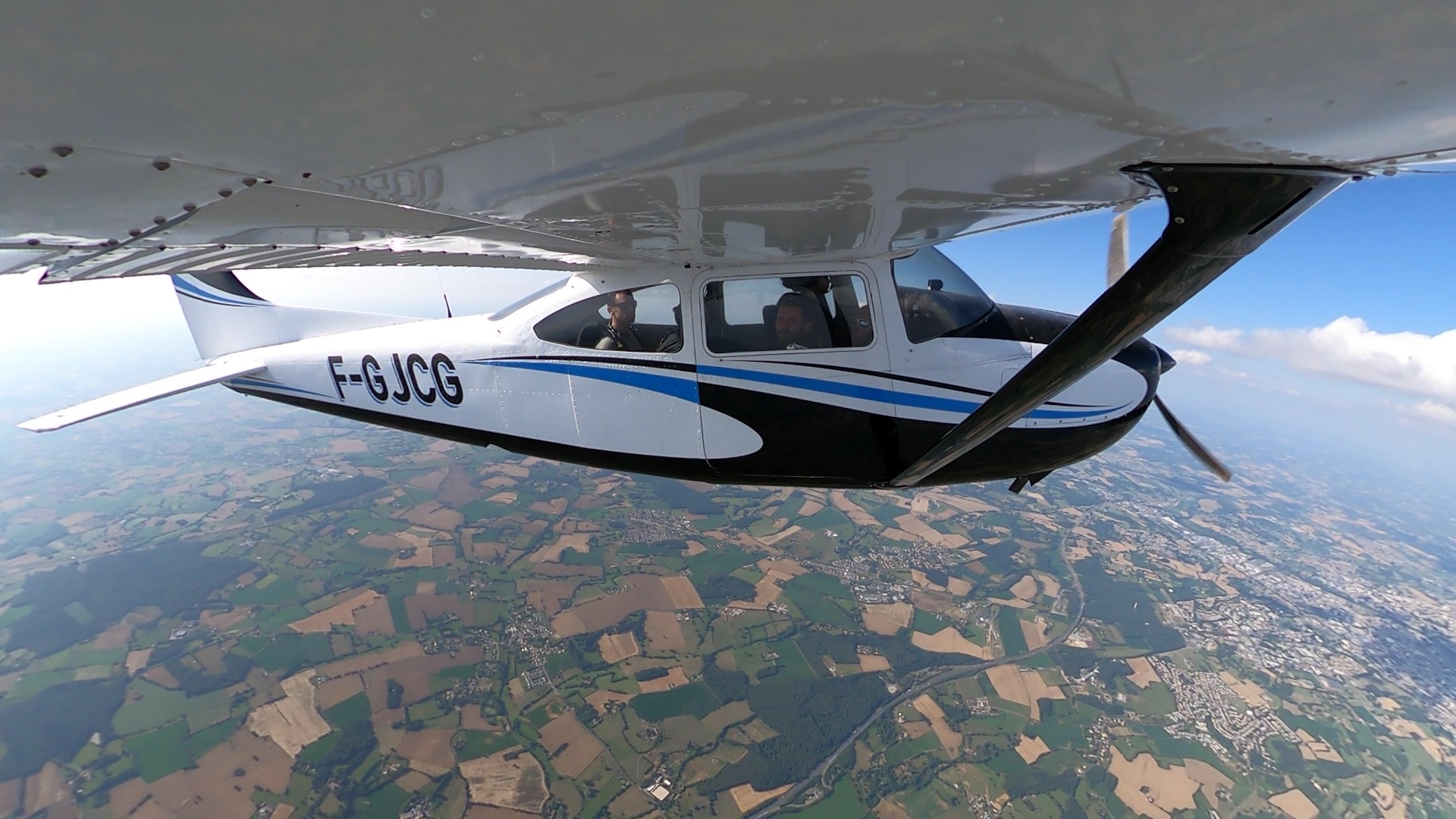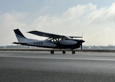 Nous utilisons un Cessna R182 qui possède 4 places (2 pour les 2 clients et 2 pour les porteurs tandem), le F-GJCG est sorti des ateliers de Cessna en mars 1978.
